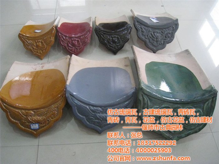 公司簡介:本廠是一家有著二十多年的雄厚技術(shù)和豐富的生產(chǎn)經(jīng)驗的私營企業(yè),生產(chǎn)各種顏色琉璃瓦,如:金黃色、灰色、灰黑色、綠色、孔雀藍、古藍色、翡翠綠、冬瓜青等,以及相應(yīng)的各種配件,如:龍、鳳、脊上獸、龍吻頭、長(短)卷尾、草尾等等,同時還隆重推出具蘇杭風格的蘇式琉璃瓦,客家......
