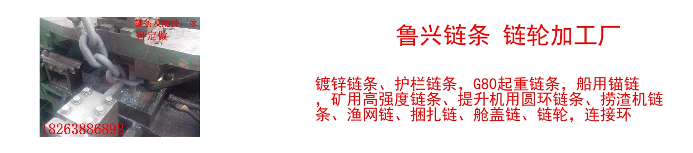 主營產(chǎn)品: 鍋爐撈渣機鏈條 船用艙蓋鏈條 船用漁網(wǎng)鏈條 礦用高強度鏈條 護欄鍍鋅鏈條 無檔錨鏈 提升機用圓環(huán)鏈條 G80起重鏈條