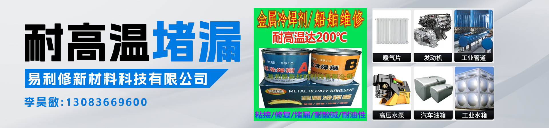 主營產(chǎn)品: 魔術(shù)鋼膠 金屬冷焊劑 補漏膠 鐵漿糊 耐高溫密封膠 耐磨修補膠 塑鋼土 塑鋼泥 可耐鋼 ab土