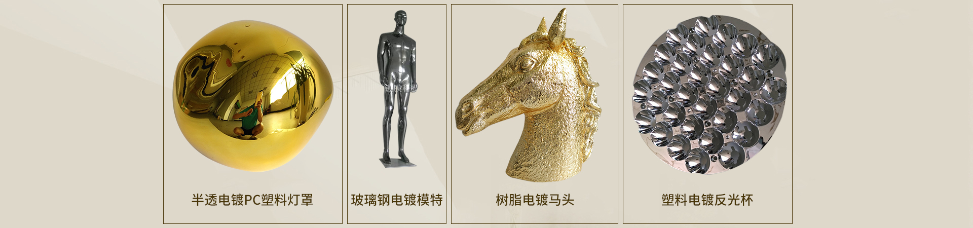 主營(yíng)產(chǎn)品: 電鍍玻璃鋼工藝品 電鍍樹脂燈飾配件 電鍍樹脂工藝品 電鍍服裝展示衣架 電鍍服裝展示模特 電鍍室內(nèi)裝飾材料 承接樹脂電鍍加工 承接塑膠電鍍加工